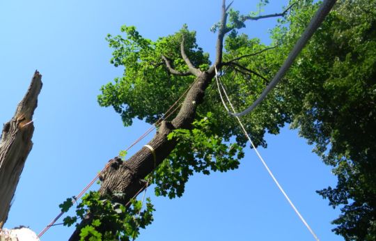 Если старое высохшее дерево растет в непосредственной близости от дома, хозпостроек или линии электропередачи (ЛЭП), его нужно как можно скорее ликвидировать. Удаление деревьев может показаться процедурой, не требующей особых знаний, но это ошибочное мнение. Вырубкой больших аварийных деревьев занимаются арбористы – специалисты, обладающие навыками промышленного альпинизма.